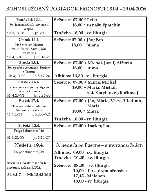 Subscribe to Gréckokatolícka farnosť Nanebovstúpenia Pána Vojčice's activities. (Opens New Window)