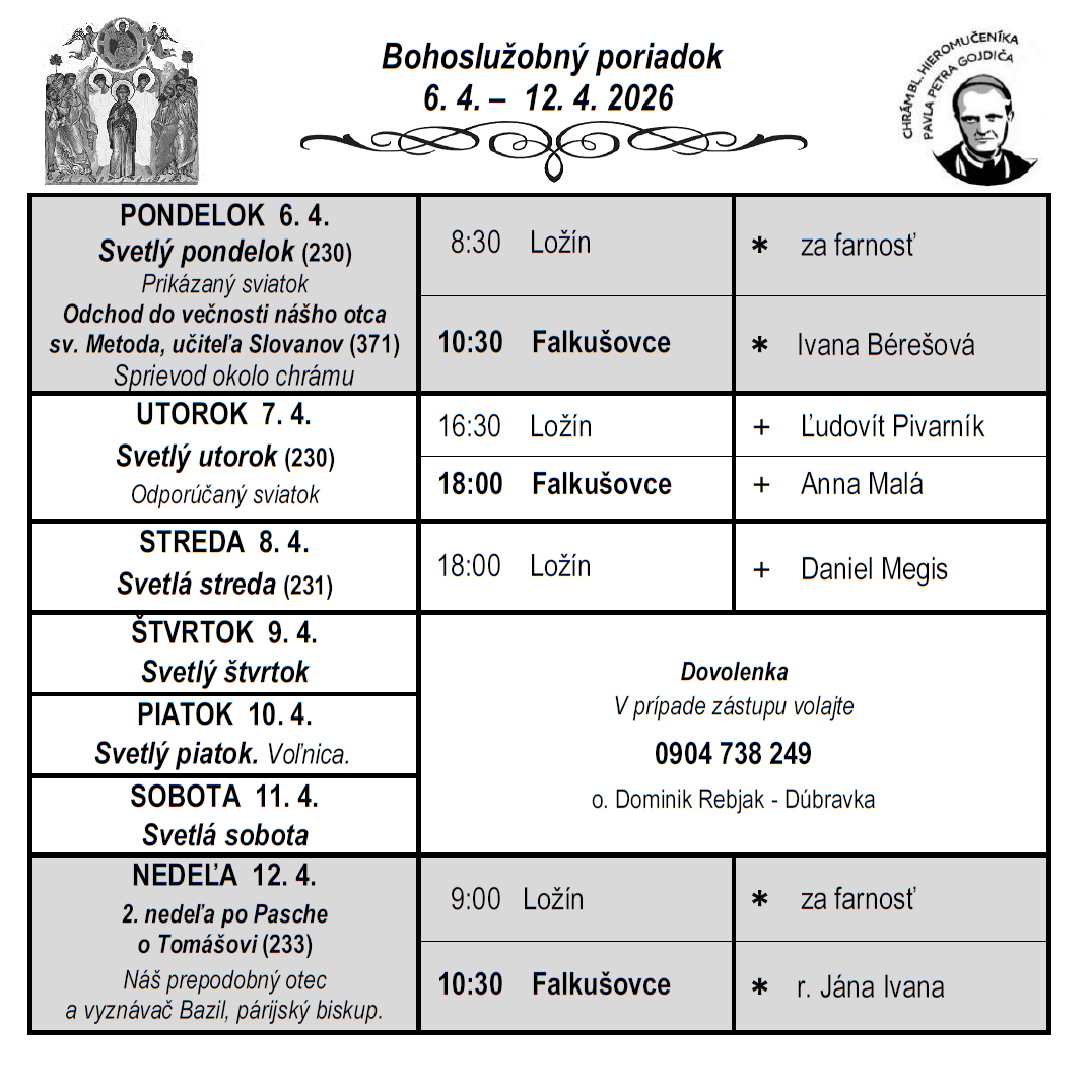 Liturgický program ⁜ Gréckokatolícka farnosť Falkušovce