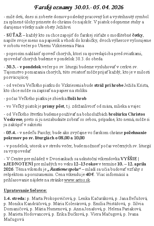 Farské oznamy ⁜ Gréckokatolícka farnosť Sečovce