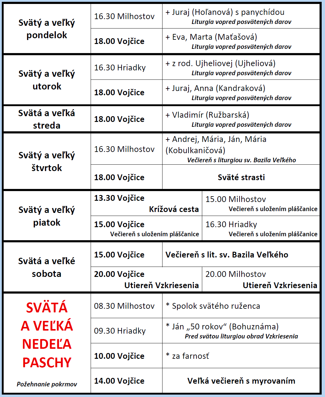 Liturgický program na Svätý a veľký týždeň