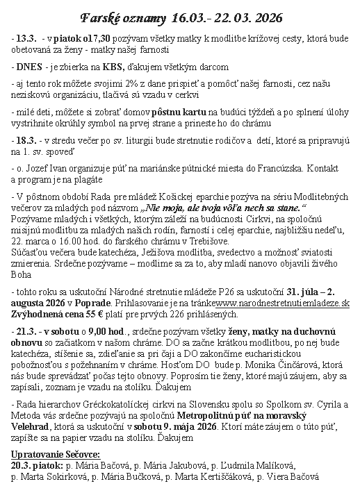 Subscribe to Gréckokatolícka farnosť Nanebovstúpenia Pána Vojčice's activities. (Opens New Window)